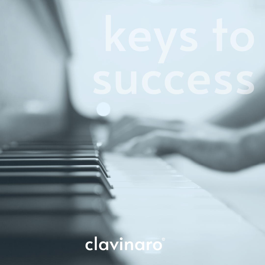 clavinaro's logo focuses on conveying the business' profession and it's goal. the suttle display of the piano keys and their slight increase in height, visualizes the companys slogan "keys to success"